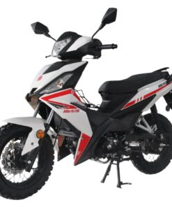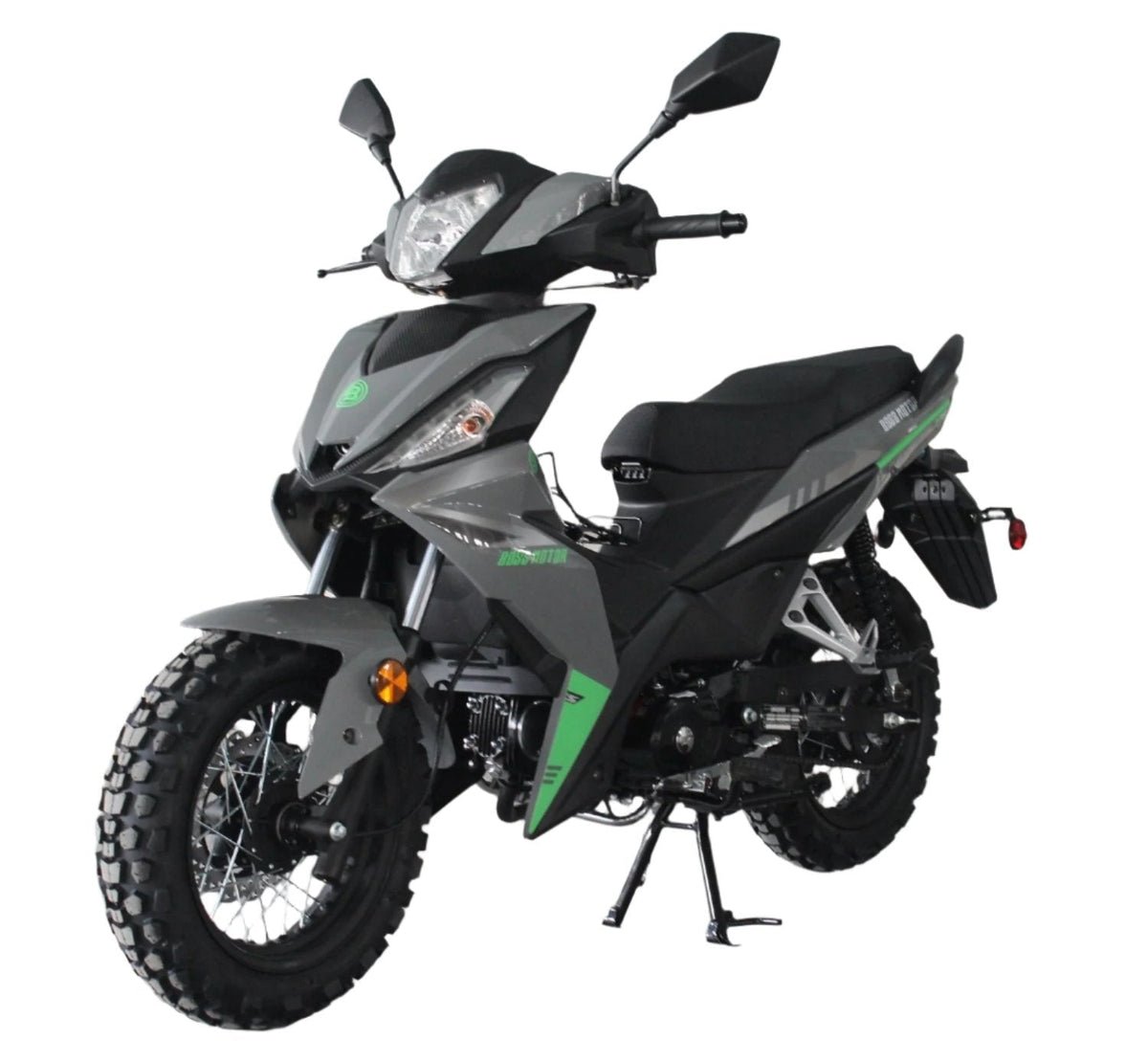 Race through rugged terrain with the Cross 125RTF Off-Road Scooter. Equipped with a powerful 125cc engine and 4-speed semi-auto transmission, this scooter is ready for any adventure. The 13-inch wheels and enduro tires provide excellent traction while the hydraulic front disc brake and rear drum brake ensure smooth and safe stops.