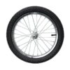 Front wheel assembly for the Razor MX500 and MX650 Dirt Rocket.Includes 16″x2.4″ knobby tire, inner tube, wire spoke wheel, disc brake rotor, and axle (not pictured), product assembly required. Note that MX500 rear wheel uses 2.50-10 tire and tube.