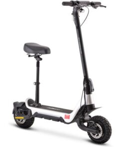 Fury Folding Electric Scooter, featuring dual motors and suspension for a smooth and speedy ride. With a lightweight lithium battery pack, this off-road capable scooter boasts long-lasting battery life. And don’t forget about its sleek design, comfy removable seat, LED headlights, and LCD screen displaying speed and distance. Plus, with 2 adjustable speeds, you can customize your ride experience!