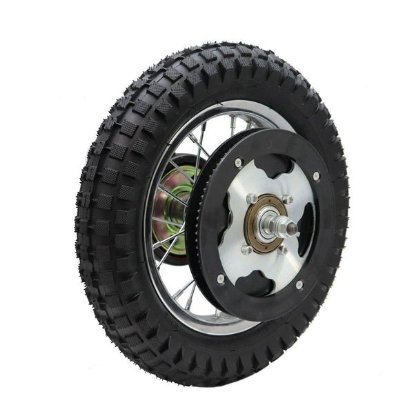 Razor replacement rear wheel assembly for the Razor MX350 Dirt Rocket and MX400 (version 34 and up). MX350/MX400 Rear Wheel Assembly includes 1 rim, inner tube, tire, disc brake, sprocket, axle, axle spacers and nuts.Dirt Rocket versions can be determined by locating your bar code ID on the bottom of the frame or on the battery cover. The 7th and 8th digit in the series will tell you the version of your product: 01=version 1; 02=version 2; 09=version 9, and so on.