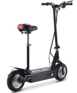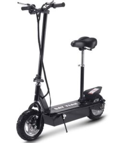 Presenting the fresh Say Yeah Electric Scooter, with a sleek and stylish design, foldable seat and handlebars, and all the bells and whistles! Features include a safety-conscious half twist throttle, reliable front and rear disc brakes, key switch, and tough 10 inch knobby pneumatic tires for off-road adventures. Plus, a powerful hub motor for conquering even the toughest terrain.