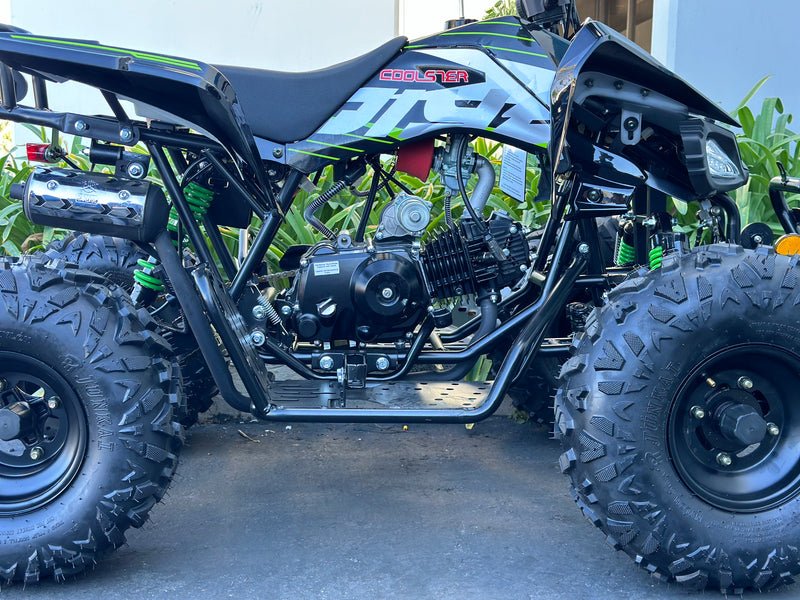 The Viper 125cc ATV is perfect for young riders 10 years and older seeking an entry level experience. With a speed governor and wireless remote kill switch, parents can feel at ease while the hydraulic disk brakes provide a safe and controlled ride. Let your child ride with confidence and excitement on the Viper 125cc ATV.