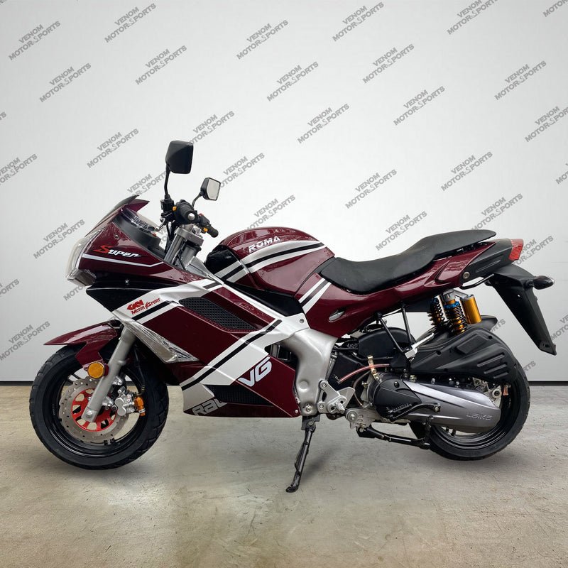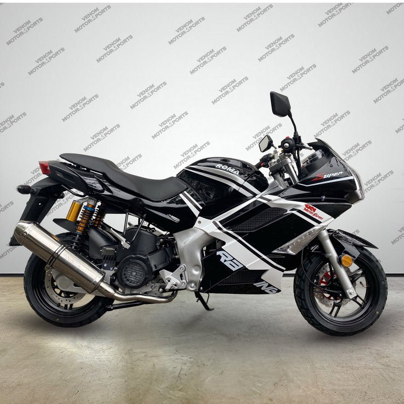 Introducing the all-new FULLY AUTOMATIC Venom X18RS 150cc motorcycle. This model is equipped with the all new GY6 150cc Automatic Engine + Transmission. The X18RS Roma 150cc motorcycle is the newest sport learning motorcycle.