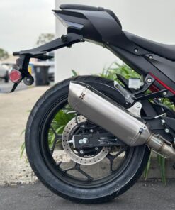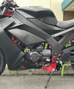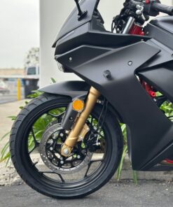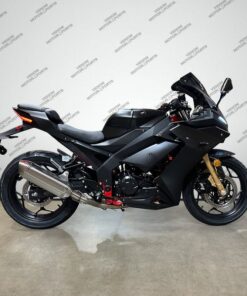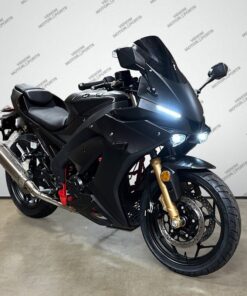 The Venom X22RR EFI 250cc is the first of the Venom “Double-R” series. It delivers a refined entry point into street riding with its fuel-injected single-cylinder engine and 6-speed transmission, engineered for smooth power delivery and highway capability. The rigid powder-coated steel frame in red provides structural integrity, while the dual-optic headlight assembly with integrated LED eyebrow strips ensures superior visibility and modern aesthetics. Installed gold front shocks offer …